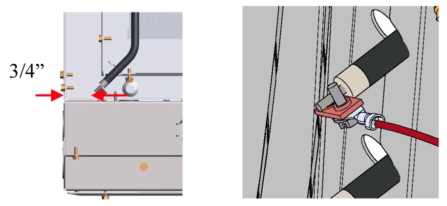 Required clearance between element termination and metal panels is 1/2" (3/4” nominal).