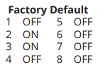 You can also use DIP switch #8 to force the transceiver into or out of Access Point (AP) mode. When in AP mode, the network used by the device for Internet access can be modified. To change the AP mode status, toggle DIP switch #8 two (2) times in short succession (ON-OFF or OFF-ON).